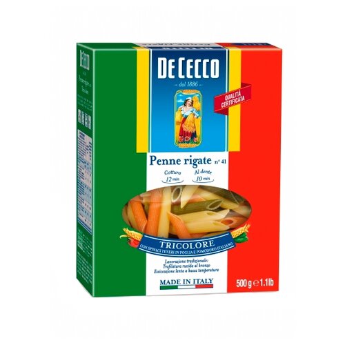 Макаронные изделия De Cecco из твердых сортов пшеницы Пенне Ригате триколоре-41, 500гр