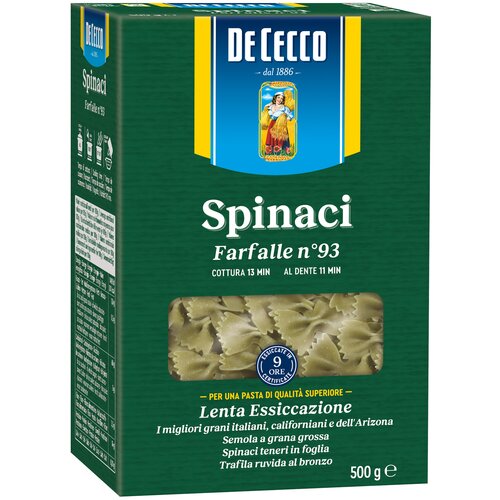 Макаронные изделия De Cecco, фарфалле №93 (FARFALLE CON SPINACI), 500 г