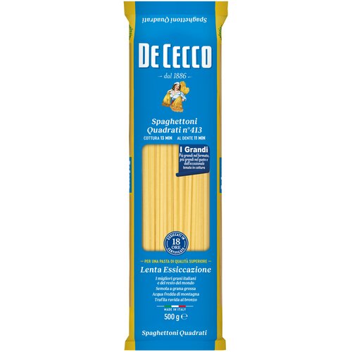 Макаронные изделия из твердых сортов пшеницы спагетти квадратные №413, 500 г. De Cecco