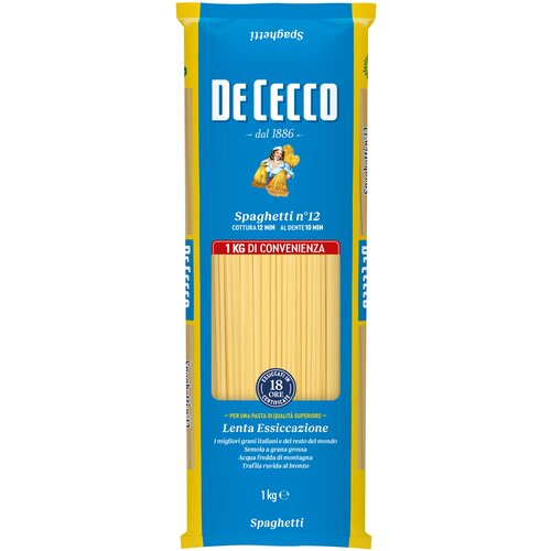 Макаронные изделия De Cecco, спагетти №12, 1000 г, 12 кг