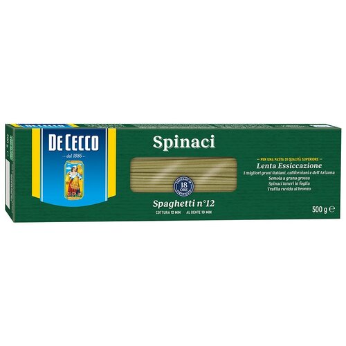 Макаронные изделия De Cecco, спагетти №12 (SPAGHETTI CON SPINACI), 500 г