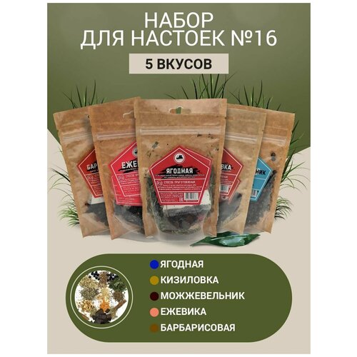 Комплект №16 наборов для настойки Дед Алтай, 5 вкусов: Барбарисовая, Ежевика, Кизиловка, Можжевельник, Ягодная