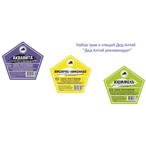 Набор трав и специй Дед Алтай "Дед Алтай рекомендует" ("Аквавита", "Имбирно-лимонная", "Кюммель")