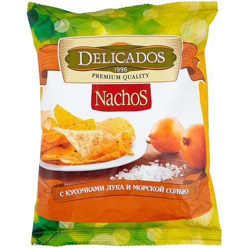 Чипсы DELICADOS "Начос" кукурузные лук и морская соль, 150 гр.