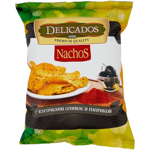 Чипсы DELICADOS "Начос" кукурузные оливки и паприка, 150 гр.