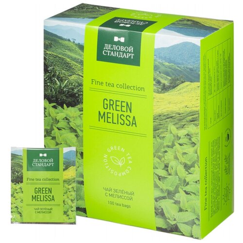Чай Деловой Стандарт Green melissa зеленый с мелиссой 100 пакетиков