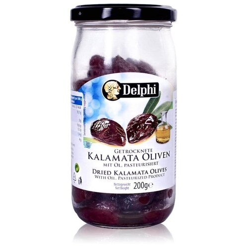 Delphi Оливки "Kalamata" с косточкой сушеные, В масле 200 гр