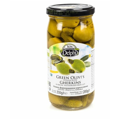 DELPHI Оливки с корнишонами в рассоле, 360 г