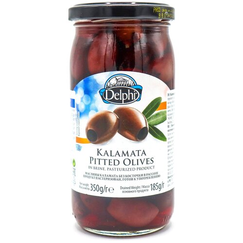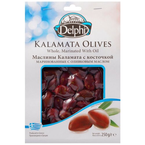 Маслины DELPHI Каламата с косточкой маринованные с оливковым маслом, 250г.