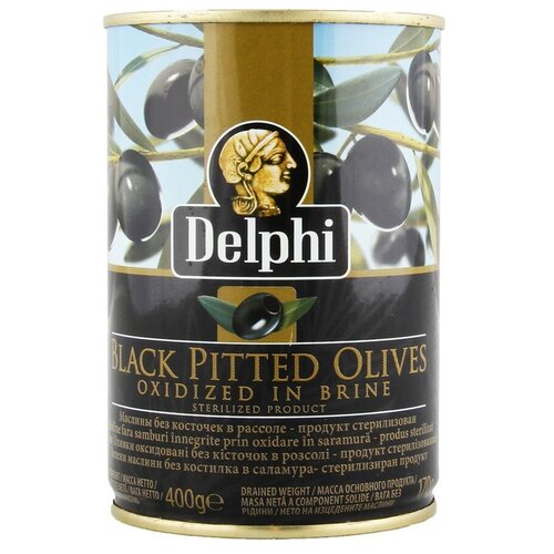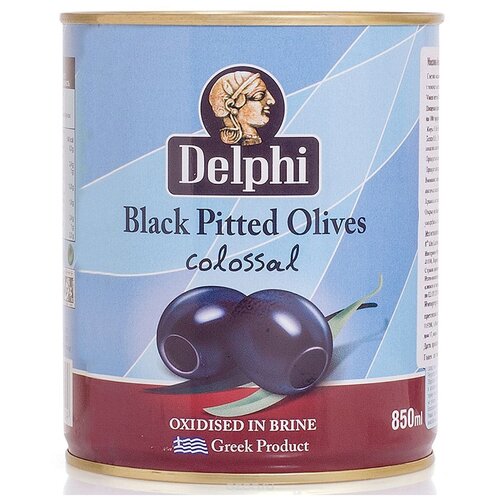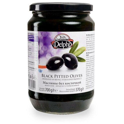 Маслины б/к в рассоле DELPHI 700 г ст/б BLACK OXIDIZED PITTED OLIVES (BLACK OLIVES THIRD COUNTRY ORIGIN) IN 720ML JARS 370G ATLAS 71/90