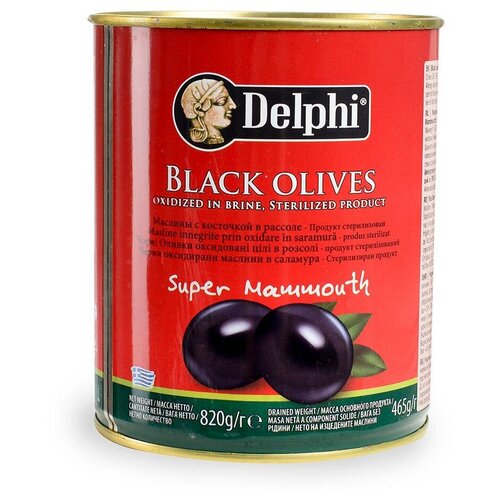 Маслины DELPHI с косточкой в рассоле Super Mammouth 91-100, 820 гр.