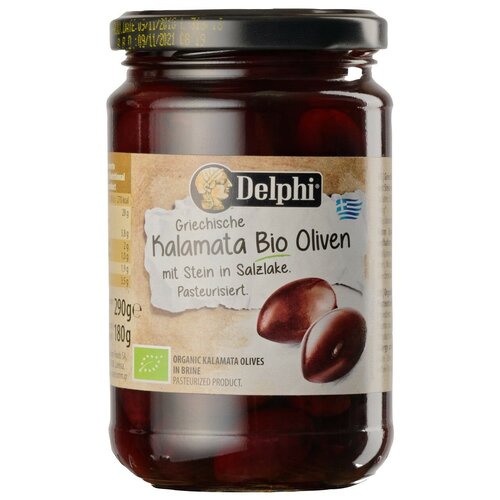 Маслины Каламата с косточкой БИО в рассоле DELPHI 290 г. KALAMATA ORGANIC OLIVES IN JARS 314ML