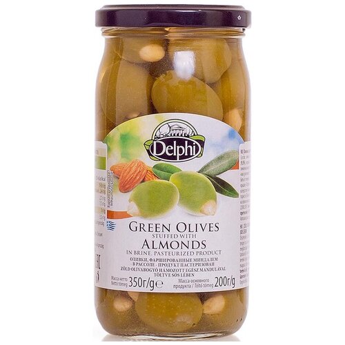 Оливки Delphi, фаршированные миндалем, ст/б, 350 г