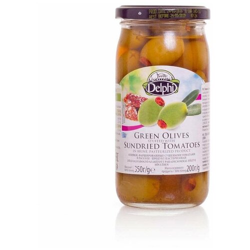 Оливки DELPHI фаршированные сушеными томатами в рассоле, 350 гр.