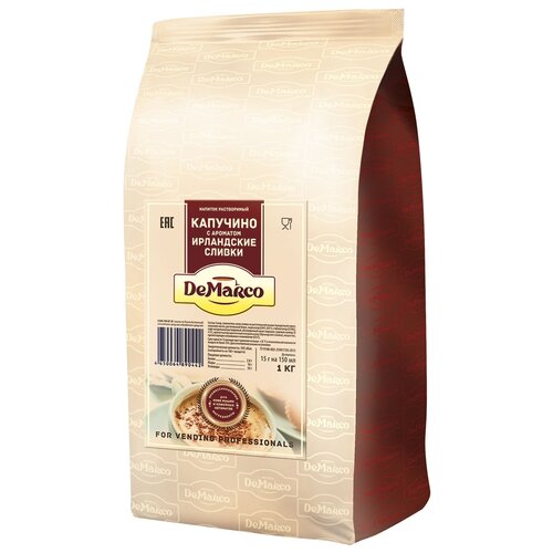 Капучино с ароматом "Ирландские сливки", DeMarco, ванильно-сливочный растворимый кофейный напиток, 1 кг