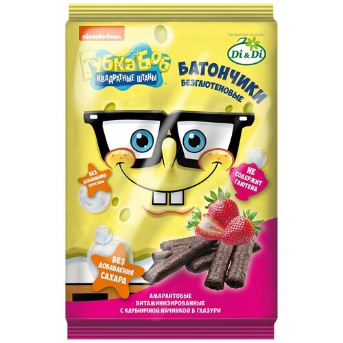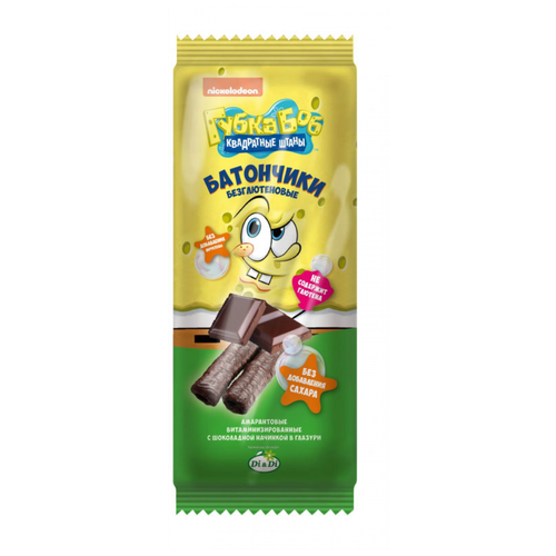 Батончики Губка Боб безглютеновые с шоколадной начинкой в глазури 20 гр.