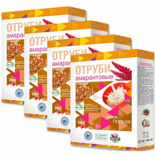 Отруби амарантовые безглютеновые с гречей Di&Di, (4 шт * 250 гр, шоубокс) / без глютена и без дрожжей / постный продукт