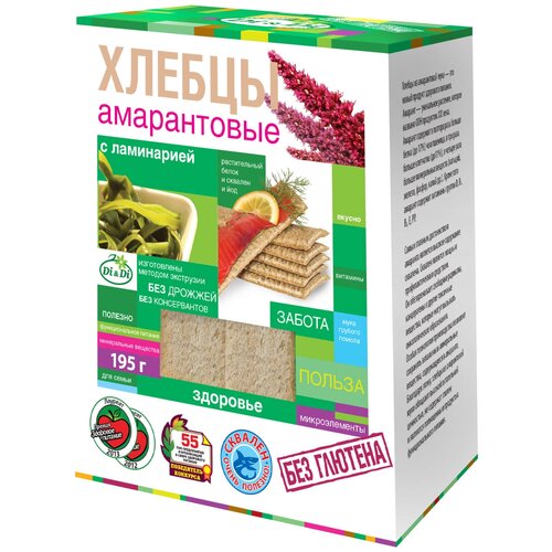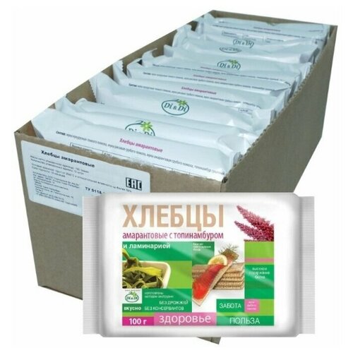 Хлебцы амарантовые DI&DI, с ламинарией, без глютена, без сахара, без дрожжей (12 шт*100гр, шоубокс) / хлебцы безглютеновые
