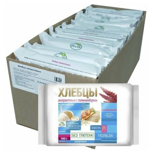 Хлебцы амарантовые DI&DI, с чесноком, без глютена, без сахара, без дрожжей (12 шт*100гр, шоубокс) / безглютеновые хлебцы