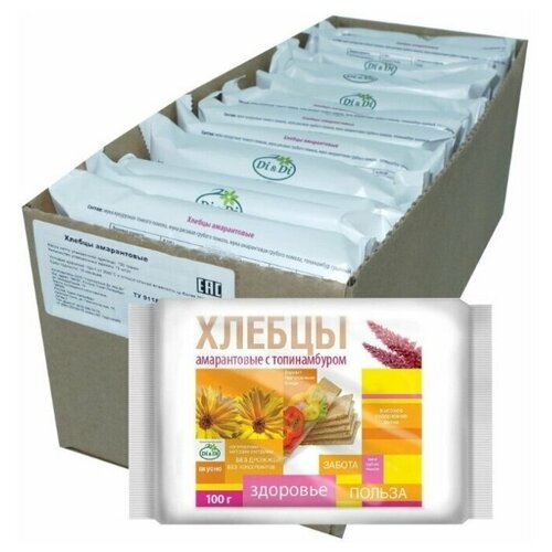 Хлебцы амарантовые DI&DI, с топинамбуром, без глютена, без сахара, без дрожжей (12 шт*100гр, шоубокс) / безглютеновые хлебцы