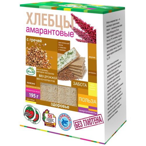 Хлебцы амарантовые DI&DI, с гречей, без глютена, без сахара, без дрожжей (12 шт*100гр, шоубокс) / безглютеновые хлебцы