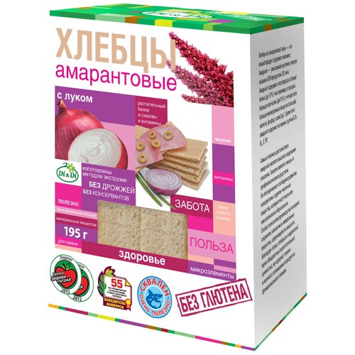 Хлебцы амарантовые DI&DI, с луком, без глютена, без сахара, без дрожжей (12 шт*100гр, шоубокс) / безглютеновые хлебцы