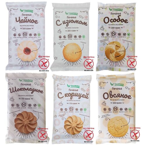 Печенье сдобное Без глютена, Без Молока, Без яиц, Диетика, Ассорти, 6 шт