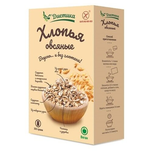 Хлопья овсяные, безглютен. "Диетика", 300 гр. (2 шт. в наборе)