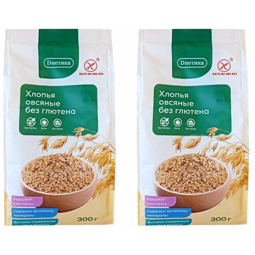 Хлопья овсяные крупные без глютена "Диетика" 300 гр (2 шт. в комплекте)