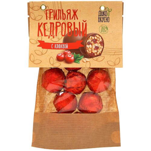 Дико вкусно Грильяж кедровый «Дико вкусно» Кедровый орех, клюква, мёд, 80 г