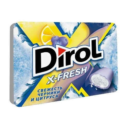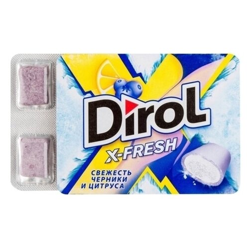 DIROL X-FRESH свежесть черники И цитруса — жевательная резинка без сахара со вкусом черники И цитрусовых фруктов 16г