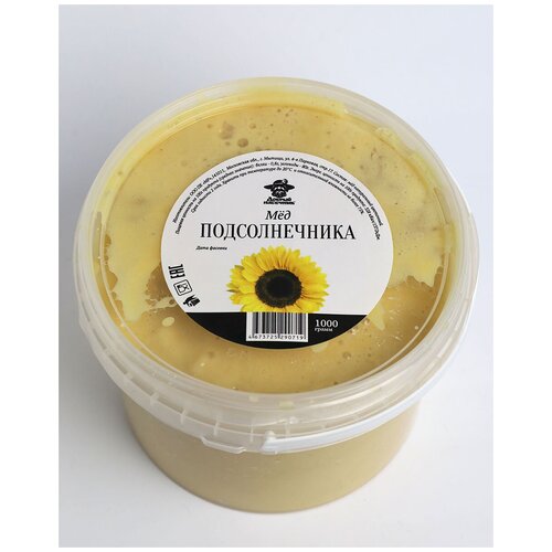 Мед подсолнечника 1 кг/ натуральный мед/ мед от пчеловодов/ Добрый пасечник