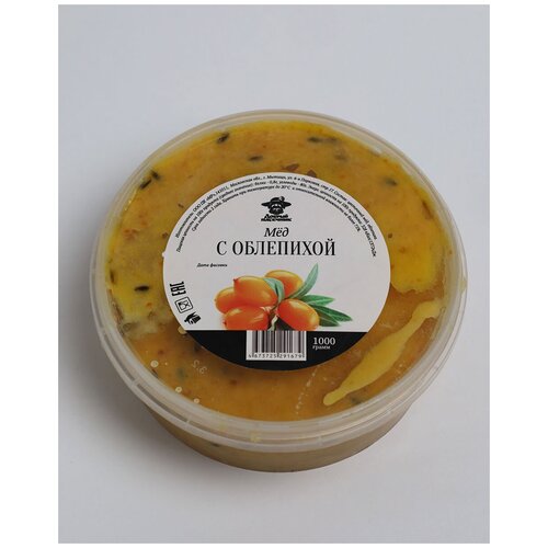 Мед с облепихой 1 кг/ крем-мед/ мед с добавками/ Добрый пасечник