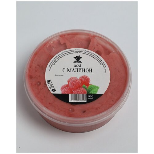 Мед с малиной 500г/ мед с добавками/ крем-мед/ Добрый пасечник
