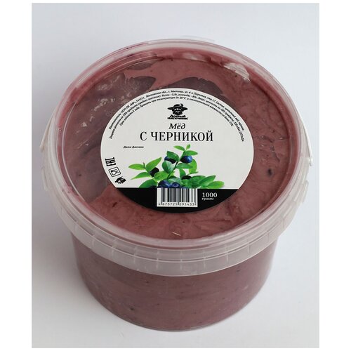 Мёд с черникой 1 кг/ натуральный мед/ мед с добавками/ Добрый пасечник