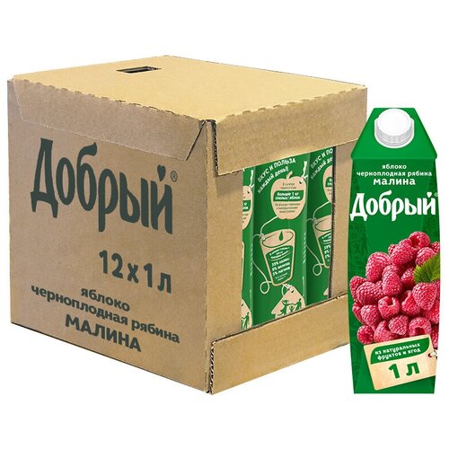 Сок Добрый Малина-Черноплодная рябина, 1 л х 12 шт