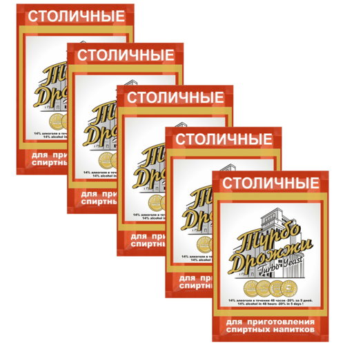 Турбо дрожжи "Столичные", 5 штук по 130 гр (комплект 5 пачек)