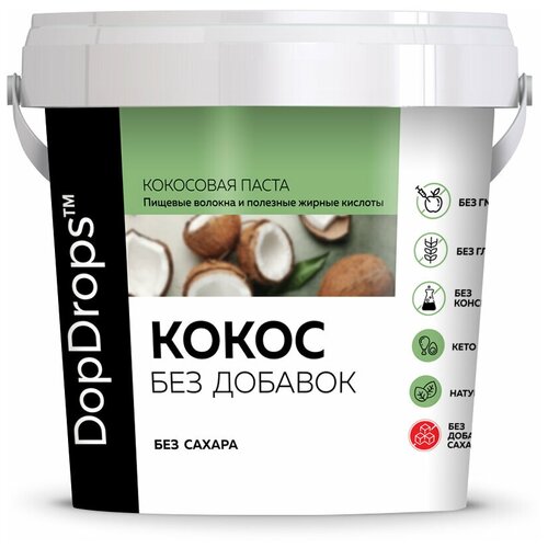Паста Кокосовая DopDrops (Урбеч из мякоти кокоса) без добавок, 1000 г