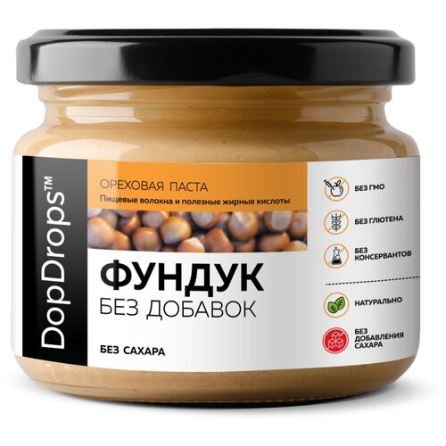 Паста ореховая DopDrops Фундук (фундучная) без добавок, 250 г