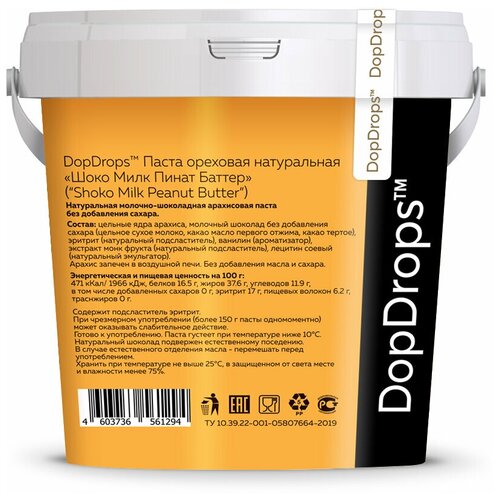 Паста Шоколадная Ореховая DopDrops SHOKO MILK арахисовая с молочным шоколадом без сахара