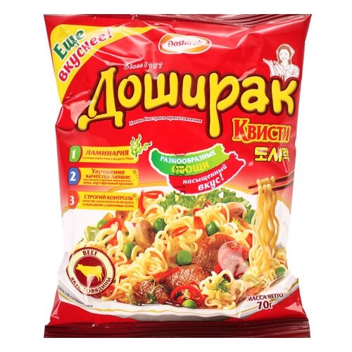 Доширак "Квисти", ассорти, 70 г, картонная упаковка, 10 штук.
