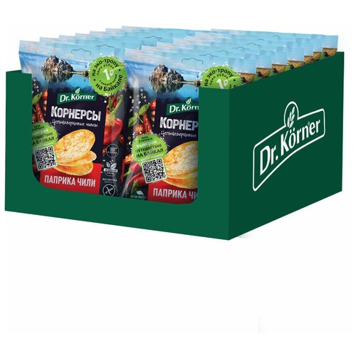 Чипсы цельнозерновые кукурузно-рисовые Dr. Korner с паприкой и чили, 50 г х 14 шт