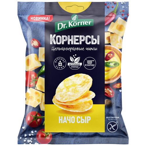 Чипсы цельнозерновые кукурузно-рисовые Dr. Korner с сыром начо 0,05 (14 шт)