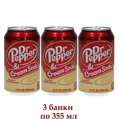 Напиток газированный Dr Pepper Cream Soda США, Доктор Пеппер, 3 банки по 355 мл