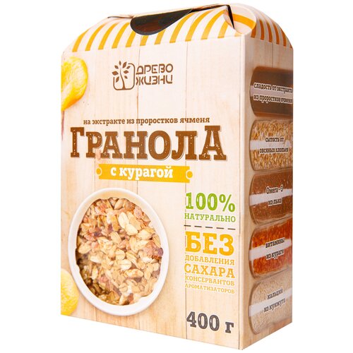 Гранола без сахара, 1000г, Древо жизни, с курагой, полезный завтрак