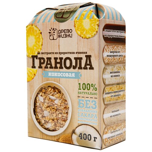 Гранола без сахара, Древо жизни 400 г, с ананасом и кокосом, полезный завтрак, пп еда