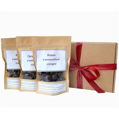 Подарочный набор "Орехи и ягоды": драже фундук, грецкий орех, вишня в шоколаде