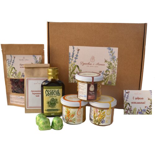 Подарочный набор "Для иммунитета" с кедровым орехом, цукатами клюквы, крем-медом с облепихой и сбитнем.