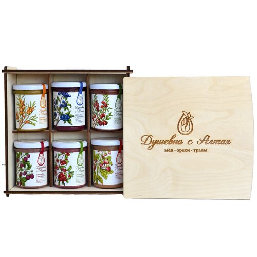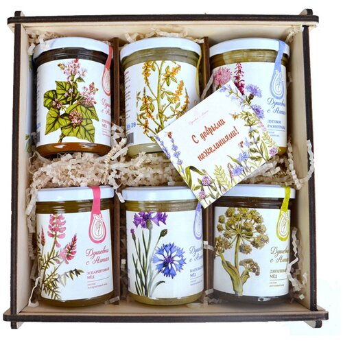 Подарочный набор меда "Травы Алтая" с донниковым, гречишным, дягилевым, эспарцетовым, луговым медом