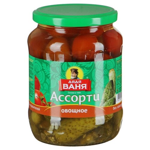 Консервация Ассорти Дядя Ваня огурцы и томаты, 680г
